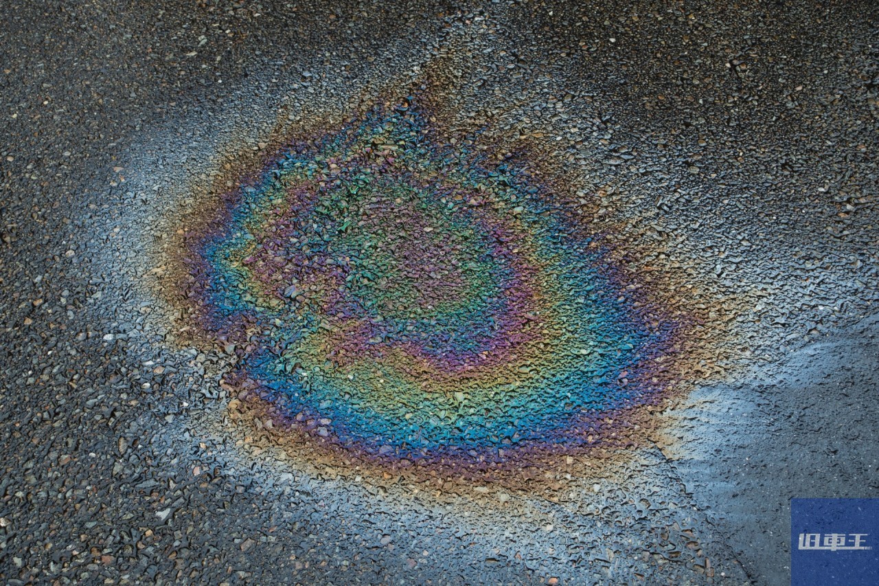 虹色のシミの正体は車輌から流出したオイル